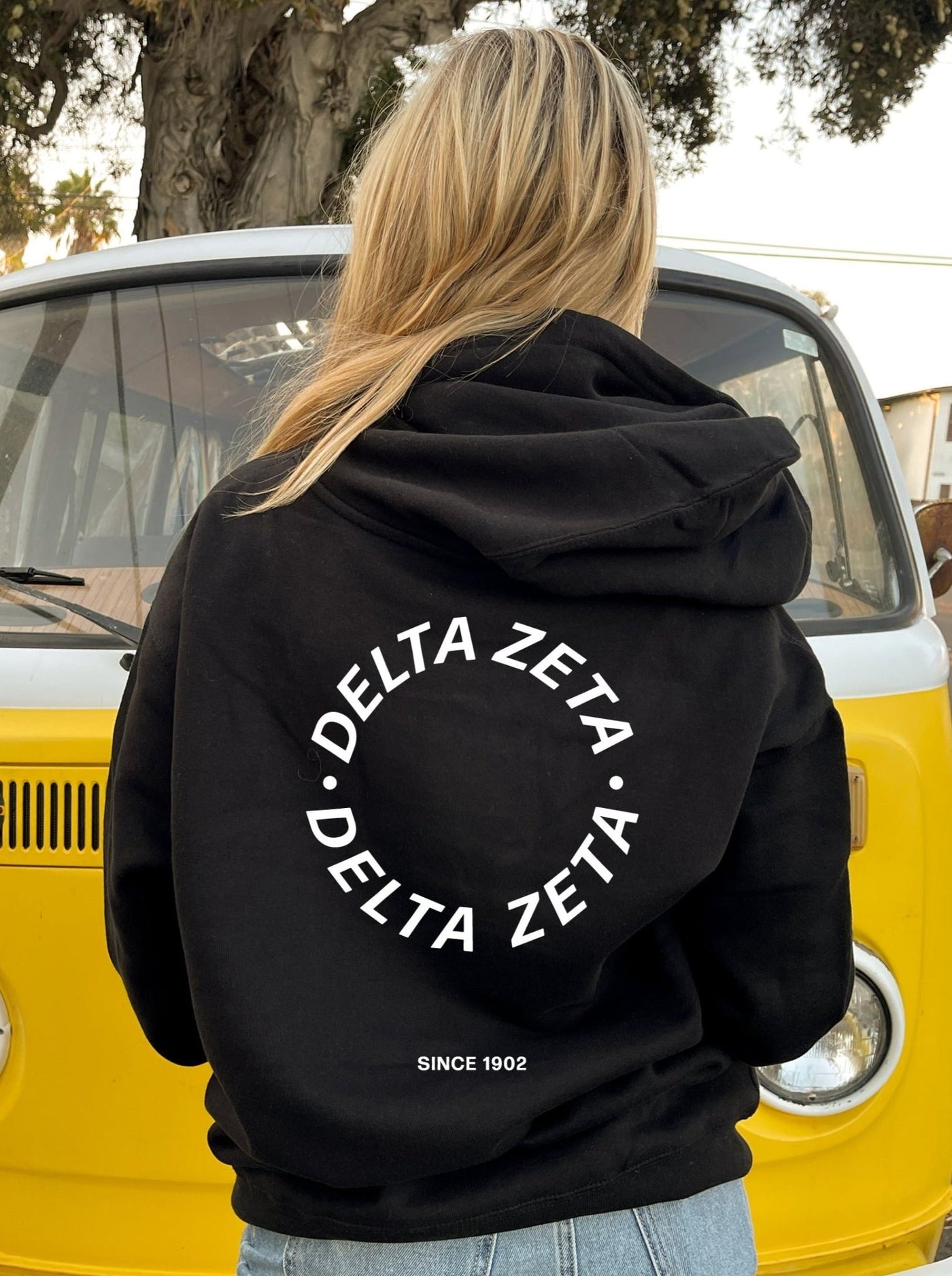 Delta Zeta Simple Trendy Cute Circle Sorority Hoodie Sweatshirt Design Black